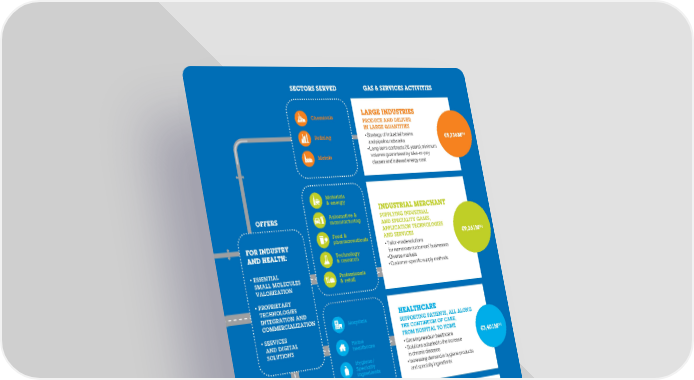 SECTORS SERVED GAS & SERVICES ACTIVITIES Our activities LARGE INDUSTRIES Chemicals PRODUCE AND DELIVER Shared resources and expertise to serve diverse customers IN LARGE QUANTITIES Refining • Strategy of industrial basins (b) and pipeline networks €5,336M PRODUCTION • ong-term contracts years€ minimum Metals volumes guaranteed by take-or-pay clauses and indexed energy cost UNDERSTANDING OF ESSENTIAL SMALL MOLECULES ONHHeAr 222 xygenitrogenydrogeneliumArgon Materials & energy CENTRALIZED PRODUCTIONON SITE INDUSTRIAL MERCHANT • Air Separation UnitsPRODUCTIONOFFERS Automotive & SUPPLYING INDUSTRIAL (oxygen, nitrogen, argon)AT CUSTOMERS' manufacturing AND SPECIALITY GASES, • ydrogen and caron APPLICATION TECHNOLOGIES monoxide production units Food & AND SERVICES (b) FOR INDUSTRY pharmaceuticals €9,261M ENGINEERING & AND HEALTH: • Tailor-made solutions CONSTRUCTION Technology for numerous customers businesses DESIGNING AND BUILDING & research • iverse markets PRODUCTION UNITS• ESSENTIAL • Customer-specific supply methods • Global solutions includingSMALL MOLECULES Professionals VALORIZATION & retail proprietary technologies • Technological independence• PROPRIETARY • Gives the Group TECHNOLOGIES a competitive edgeINTEGRATION AND • Creates growth withCOMMERCIALIZATION HEALTHCARE third-party customersTRANSPORT VIA PIPELINES Hospitals SUPPORTING PATIENTS, ALL ALONG In gaseous form • SERVICES THE CONTINUUM OF CARE, AND DIGITAL Home FROM HOSPITAL TO HOME SOLUTIONS (b) healthcare • Growing needs in healthcare €3,401M €335M(a) • Solutions adapted to the increase TRANSPORT VIA TANKER TRAILERS Hygiene/ in chronic diseases In liquid form Specialty • ‚ncreasing demand in hygiene products ingredients and specialty ingredients Semi- ELECTRONICS €372M(b) conductors DESIGNING, MANUFACTURING GAS PACKAGING AND PROVIDING MOLECULES Flat panels FOR THIS SECTOR (b) Transition from liquid to gaseous form • Technological solutions with ultra-pure €1,644M GLOBAL MARKETSAll gases including special gases, gases and advanced materials & TECHNOLOGIES medical gases, gases for Electronics Photovoltaic • Support solid growth in certain markets DEVELOPING NEW related to digital development MARKETS REQUIRING A GLOBAL APPROACH OR MARKETS 2% 2% WITH SIGNIFICANT Energy 8% TECHNOLOGICAL transition 26% CONTENTTRANSPORT OF CYLINDERS • High level of technologicalBY TRAILERS Maritime GROUP 17% expertiseUsually in gaseous form SALES €20.3bn • High potential markets Scientific exploration 45% (a) Sales to third parties.10 11 (b) Reenue. 2017 data.