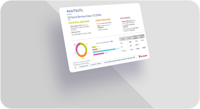 Asia-Pacific Q4 Gas & Services Sales: €1,039m INDUSTRIAL MERCHANT LARGE INDUSTRIES ELECTRONICS • China again >+15% with very • Several ramp-ups in China • Double digit growth (China, strong growth both in cylinders • High air gas volumes in Korea, Japan, Singapore) and bulk Singapore • Very dynamic Advanced • Strong pricing • Positive Australia Materials • Flat Australia, decreasing Japan • Strong growth in carrier gases • High level of E&I sales (1) (2) (1) Refer to appendix for definitions (2) Excluding impact of energy 15 February 2018 Full Year 2017 Results The world leader in gases, technologies and services for Industry and Health 45